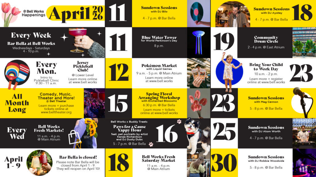 There’s always a reason to visit Bell Works— whether it’s happy hour on The Rooftop or a celebration in the ballroom the events calendar is constantly filled with reasons to stop by.